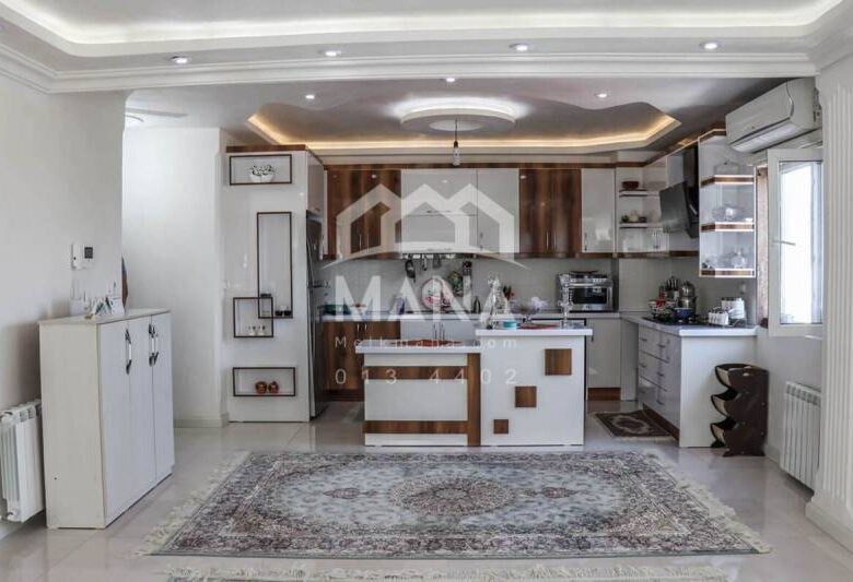 آشپزخانه ی این ملک در کیفیت فضایی مناسب با ردیفی از کابینت های هایگلاس و ام دی اف شکیل دارای ویترینی چشم نواز، سینک ظرفشویی 2 لگنه، گاز رومیزی، هودی لمسی و جزیره ای با جلوه گری در دل خانه تصویری هنری را در این قاب جادویی رقم زده است. این آشپزخانه دارای ویژگی های مثبتی است که برای بانوان ایرانی بسیار اهمیت دارد.