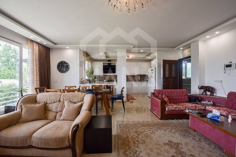 با گذر از راه پله و ورود به سالن، شما با یک سالن نورگیر دلبار با دید حیاط و باغ های اطراف روبرو میشوید. در گوشه سالن آشپزخانه ای با هود و گاز رومیزی و متریال بکار رفته درجه یک روبروی میشوید که در بهترین نقطه قرار گرفته است.