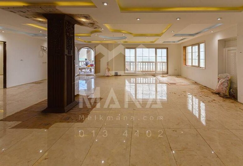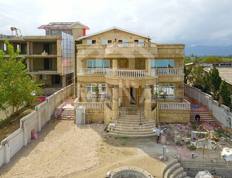 این ویلای ساحلی در گیلان، در فاصله کمتر از 50 متر از ساحل دریا واقع گشته است. بنا شدن این ویلا در زمینی به مساحت 1100 متر مربع در بلندی واقع شده و دید کم نظیری را برا ساکنین فراهم آورده است. زیربنای این ویلای ساحلی لاکچری 860 متر مربع میباشد. در زمان بازدید از این ویلا، محوطه آن در حال ساخت و اجرا بود که با توجه به شواهد از محوطه بسیار غنی برخوردار است . نمای این ویلای تریبلکس از سنگ بوده و معمار و طراح آن سعی در اجرای بنایی مجلل داشته اند که بخوبی به این نیت دست یافته اند. درب ورودی این ویلای ساحلی در شفارود چوب حکاکی شده دستیست که نوید از ورود به ویلایی مجلل میدهد. با ورود به این ویلای لاکچری با نشیمنی وسیع و نورگیر روبرو میشویم که یک آشپزخانه به همراه مطبخ و یک خواب در آن جانمایی شده اند و یک بار بسیار شیک نیز در گوشه ای دیگر خودنمایی مینماید. در وسط این سالن نشیمن پلکانی چوبی منبت کاری شده مارا به طبقه دوم و سوم این ویلا هدایت مینماید. کف این ویلا از سرامیک مرغوب و سقف از کناف و پنجره های دوجداره نورگیر در تمامی جهات از امتیازات این ویلای لاکچری میباشد. شایان ذکر است که این ویلا دارای آسانسور داخلیست . با بالا رفتن از این پله به طبقه دوم میرسیم که تمامی اتاقها در این طبقه جانمایی شده اند در ادامه تراسی وسیع رو به دریا در این طبقه امکان بهره مندی از دید ابدی دریا را فراهم می آورد. در طبقه سوم یک سالن وسیع به همراه دربی که منتهی به روف گاردنی وسیع میشود امتیاز اصلی این ملک محسوب میگردد.